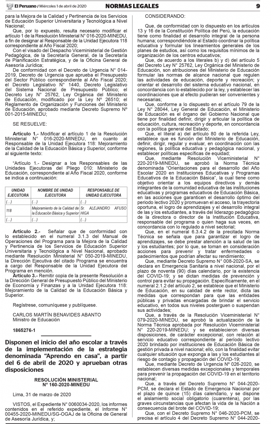 Disponen el inicio del año escolar a través de la implementación de la estrategia denominada “Aprendo en casa”, a partir del 6 de abril de 2020 y aprueban otras disposiciones.